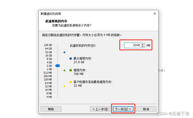 6.设置虚拟机内存,是根据物理机器来配置,建议是2G