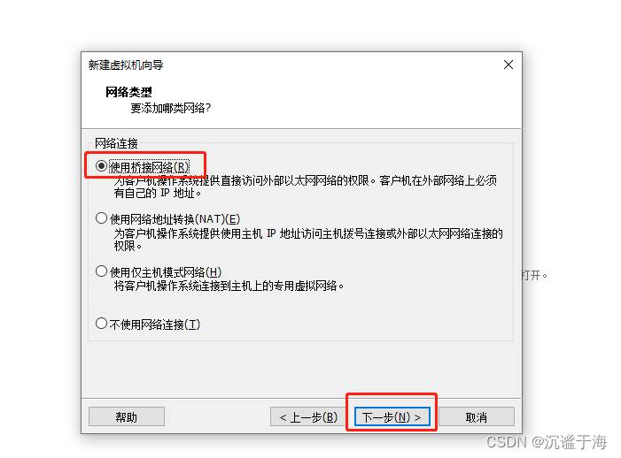 7.设置网络类型,我这里选择的是桥接网络,也可以根据自行需要换成NAT
