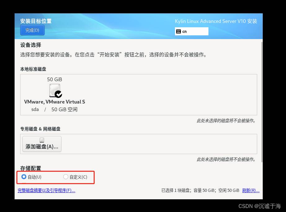 选择自动即默认分区,选择自定义后点击完成进入手动分区页面
