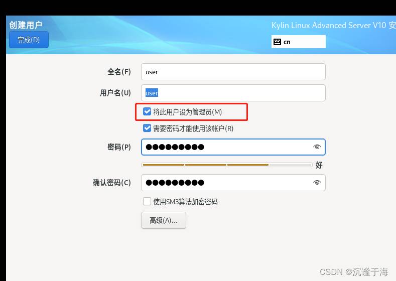 这里的用户是否设置为管理员,根据需要,图片上是勾选的
