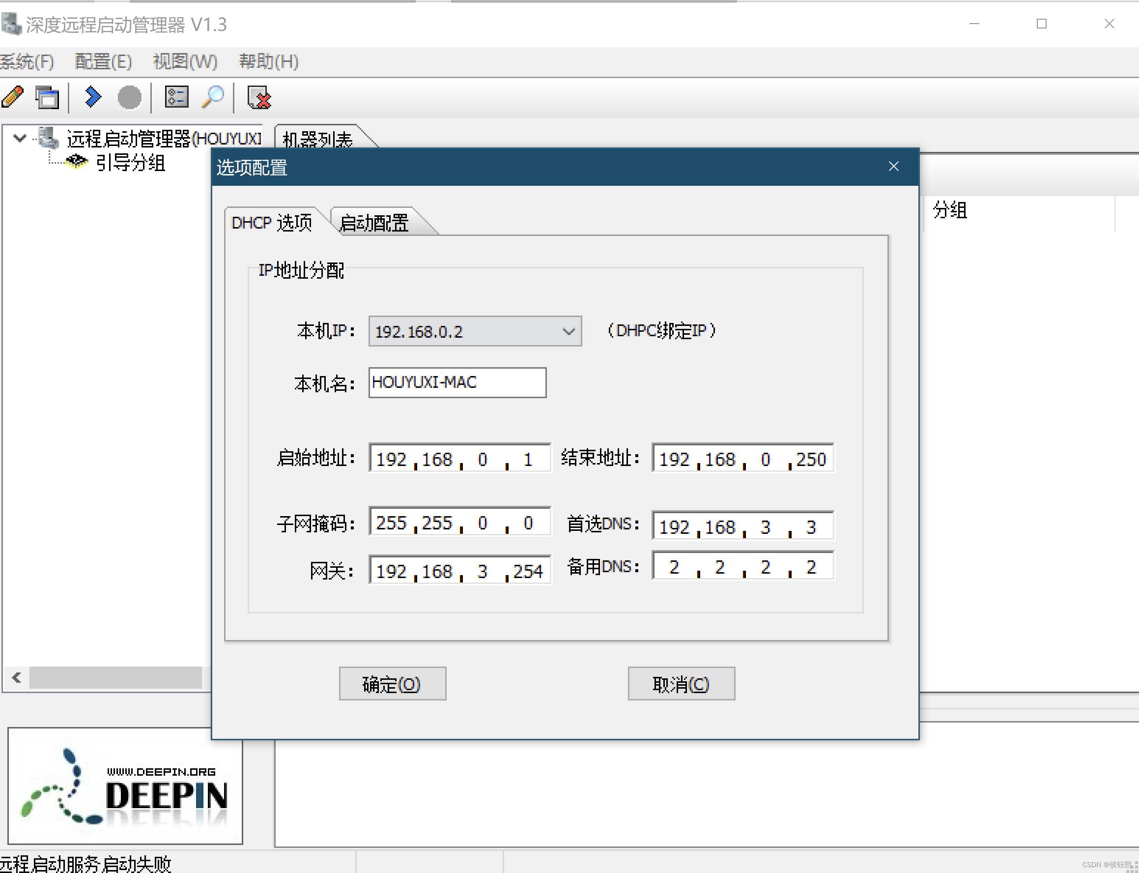 4.1.3、点击“NetbootM”启动软件,点击选项配置配置DHCP;