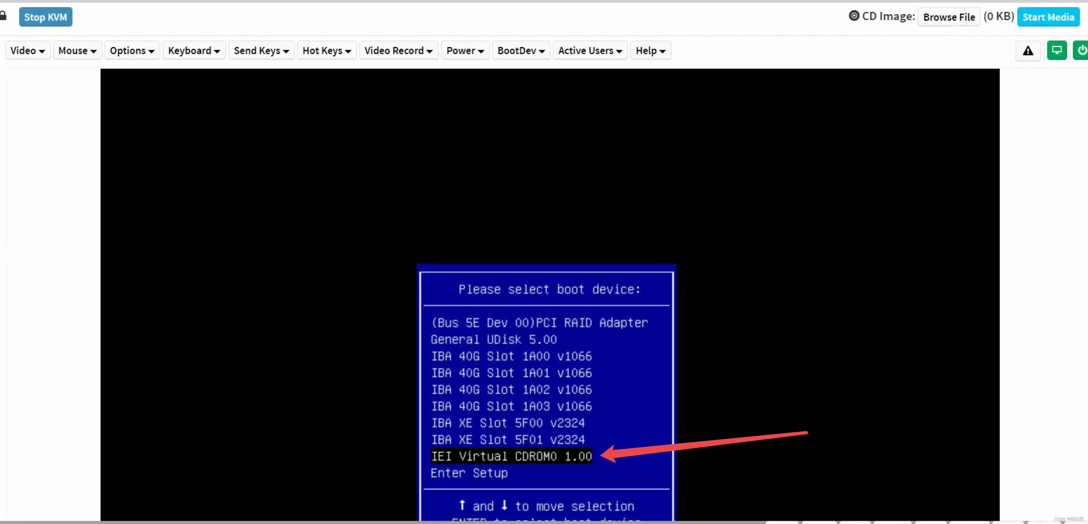 4.2.5、进去引导选项,按向下按钮,选择“IEI Virtual CDROM0 1.00”点击回车,等待系统加载;