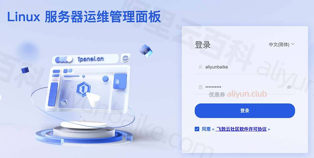至此,使用阿里云安装1Panel服务器Linux面板全流程完毕,可以在阿里云CLUB中心 aliyun.club 查看更多云服务器详细配置和使用教程。