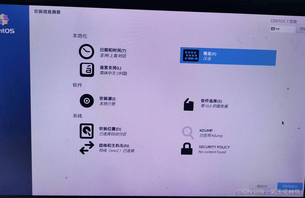 选择中文,然后点击完成。会进入如下配置界面,对每一个选项一一进行配置,然后点击安装就行,这是我配置好之后的界面。