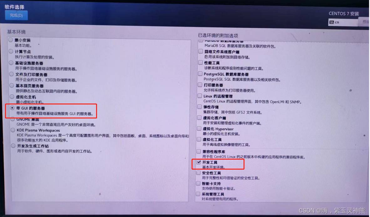 默认的是最小化安装,但是我们需要安装图形界面,所以就不能最小化安装,需要修改里面的选择如下: