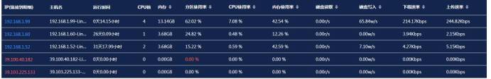 运维报表中包括IP地址、主机名、运行时间、CPU核、内存、分区使用率、磁盘读取、磁盘写入、下载速率、上传速率的详细信息。