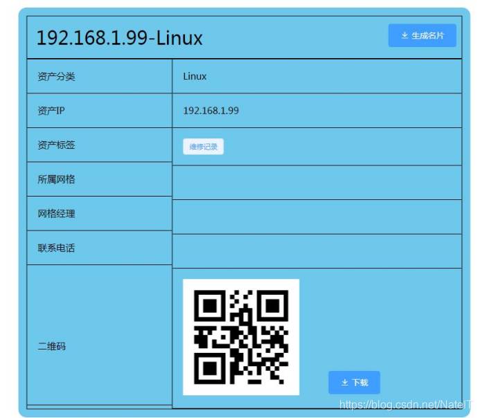 IP详细信息包括资产名称、资产分类、维保日期、所属网格、网格经理、联系电话、IP地址、cup使用率等各类信息。