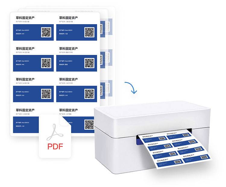 在大量设备管理中,系统需要支持批量导入设备数据,并自动生成一个设备一个二维码的功能。能够通过标签排版,连接办公打印机进行打印。打印出的二维码标签可以迅速部署到相应设备上,快速投入使用。