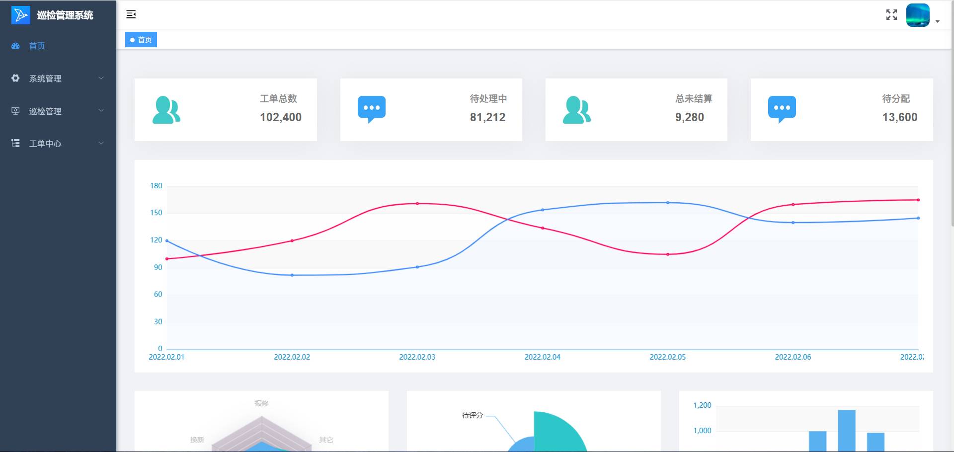 工单中心:包括类型设置、流程管理、工单、待办任务、流程监控等功能,可以对巡检过程中产生的问题进行跟踪处理。