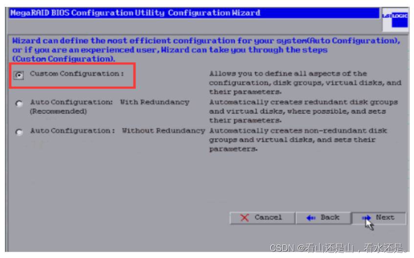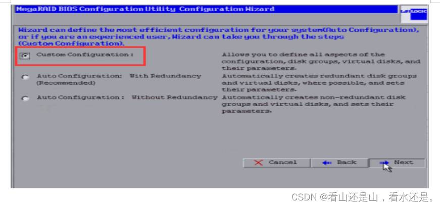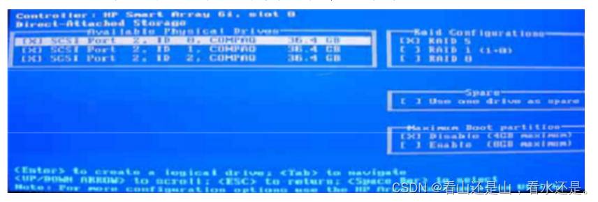 选择不同的级别,选项会有所差别。选择好需要配置的RAID级别(我们这里以RAID5为例),按回车确认。