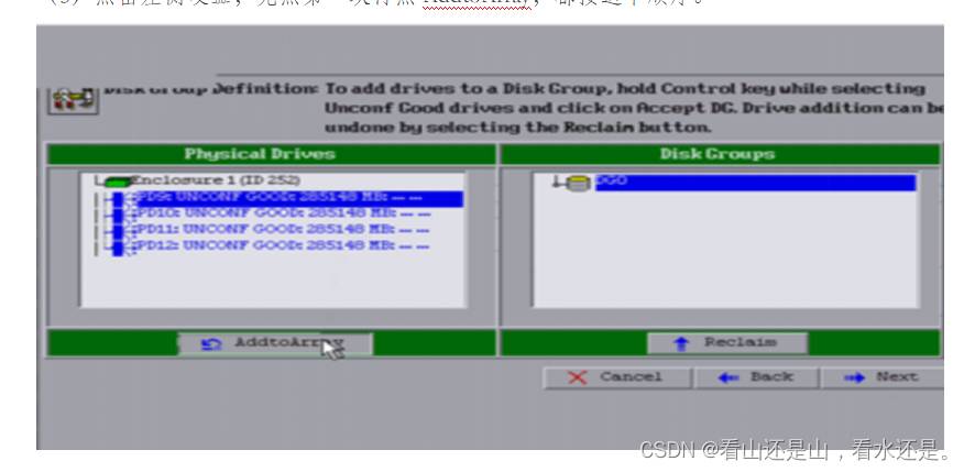 右边:阵列的三个选项。最上面是阵列级别的选项。依次是级别5,级别1(1+0),级别0。图中选中的级别5。