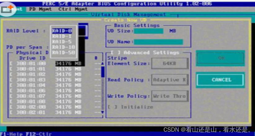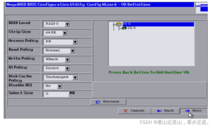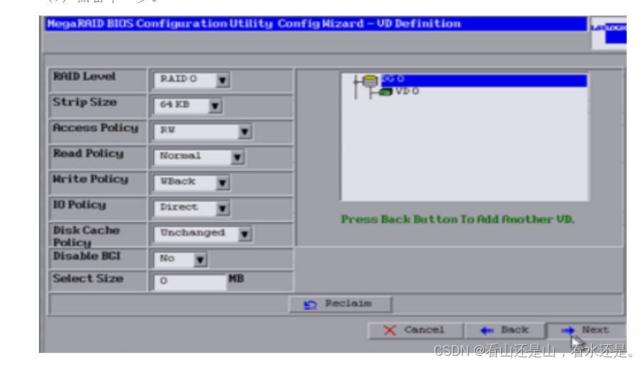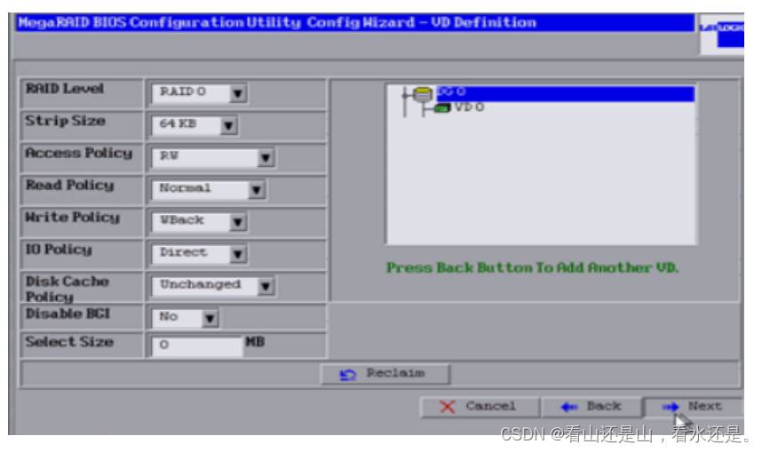 (4)选择”Create New VD”创建新虚拟磁盘后会出现下图: