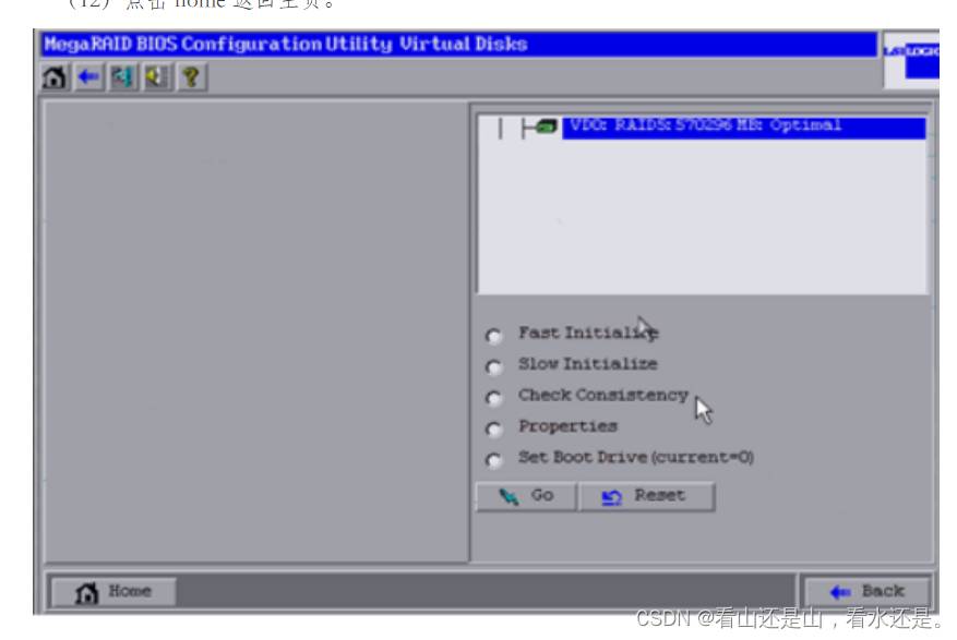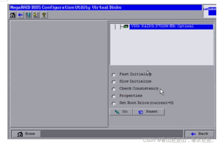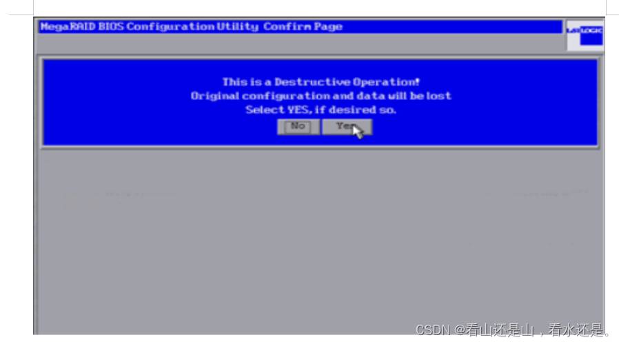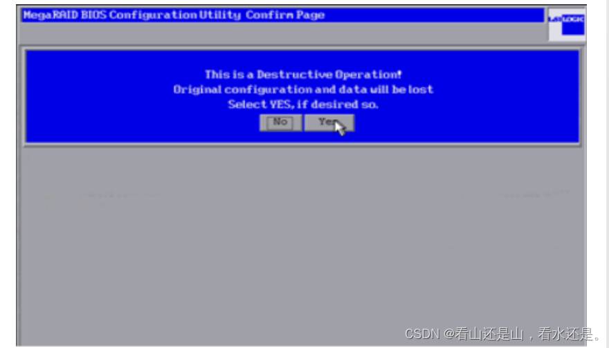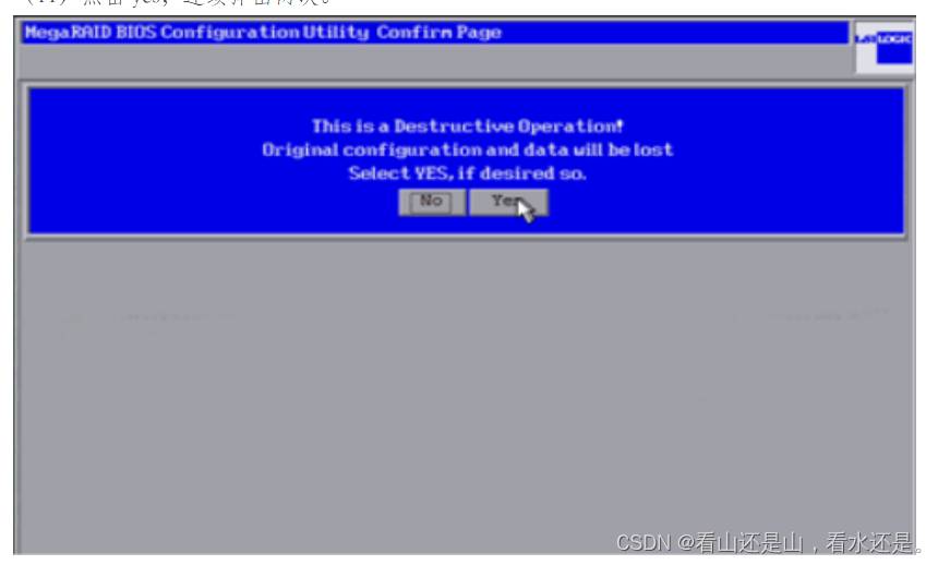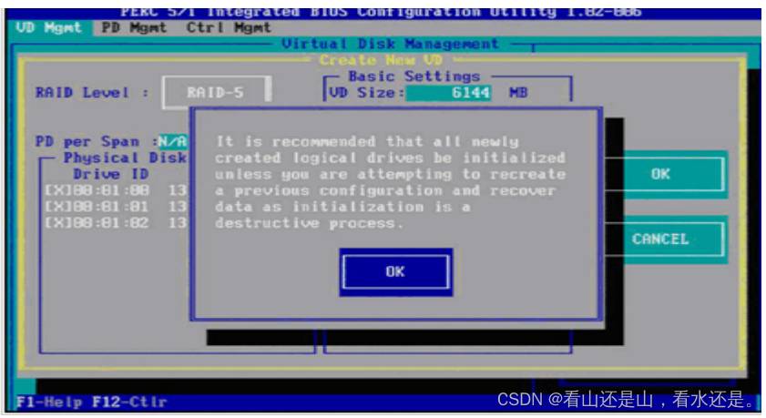 (5)上述的配置确认完成后,按Tab键,将光标移至OK处,按回车,会出现如下的提示,如果是一个全新的阵列,建议进行初始化操作,如果配置阵列的目的是为了恢复之前的数据,则不要进行初始化。按回车确认后这个RAID5就做好了。