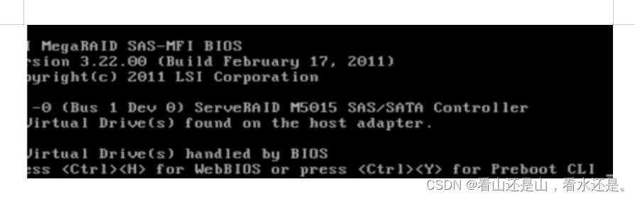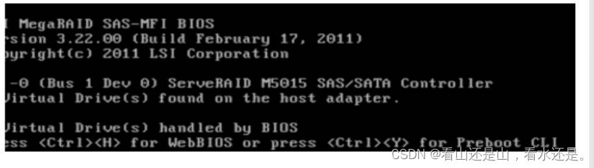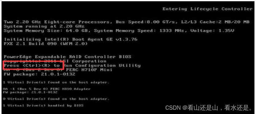 (1)服务器开机自检到阵列卡时,会有按CTRL+R进行阵列配置的提示。画面如图: