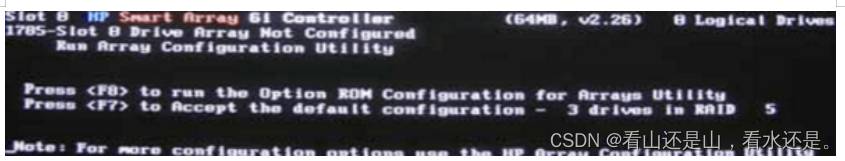 (1)服务器开机自检到阵列卡时,会有按F8进行阵列配置的提示。画面如图:
