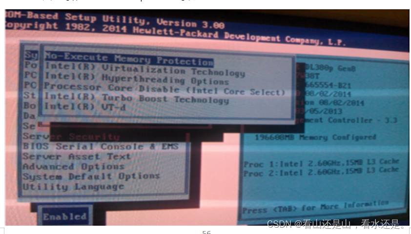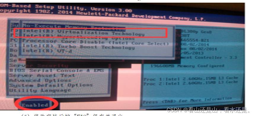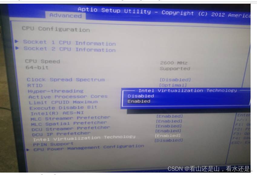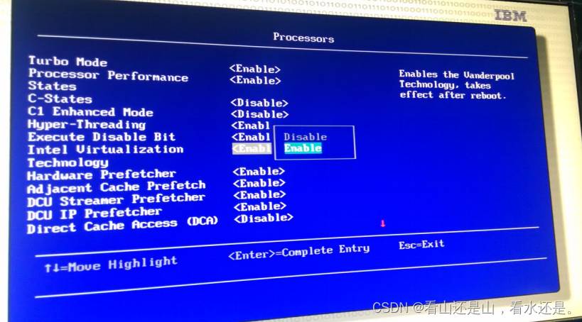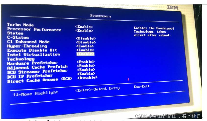 (5)按“enter”和上下可以选择虚拟化Enable或disable