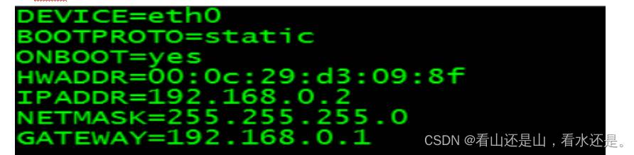 (2)进入后,写入IP地址,掩码和网关。IPADDR=IP地址,NETMASK=掩码。GATEWAY=网关。且保证BOOTPROTO=static静态方式,如需DHCP获取,将static更改为dhcp即可。开启网口:ONBOOT=yes