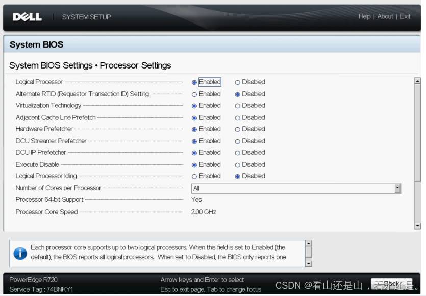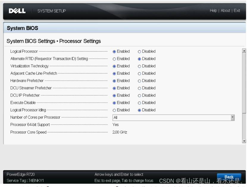 (2)在bios设置界面选择”System BIOS --> Processor Settings”选项,按”enter”键进入