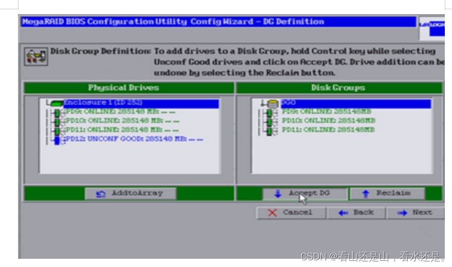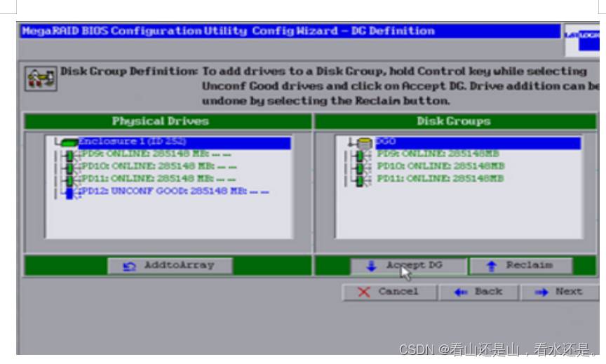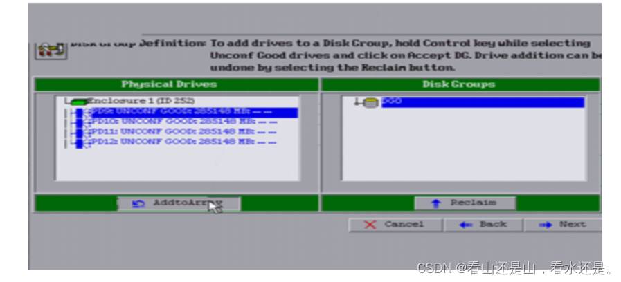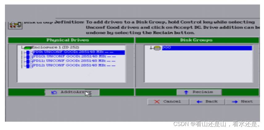 左边:是服务器里所有硬盘的情况,所在位置和容量大小。图中三块硬盘都被选中。