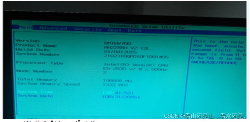 (1)开启服务器在出现F2提示界面时按“F2”键进入bios设置界面
