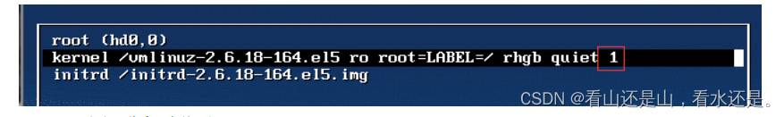 (3)在grub edit行,行尾输入:space init=/bin/bash 输入完成后,按回车键保存退出,按B键进入系统,此时进入系统过程中不会加载任何进程,进入系统后,在# 后面输入mount –o remount ,rw /