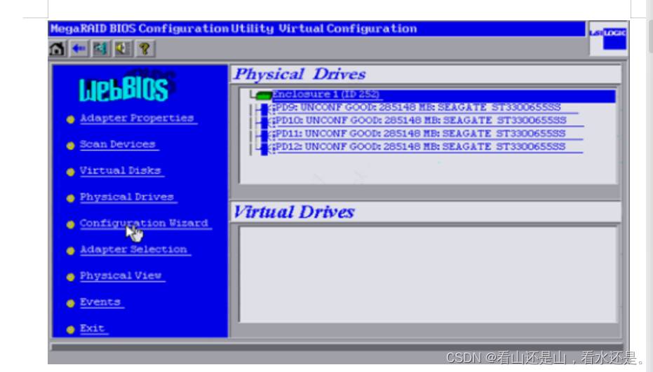 按照屏幕下方的虚拟磁盘管理器提示,在VD Mgmt菜单(可以通过CTRL+P/CTRL+N切换菜单)