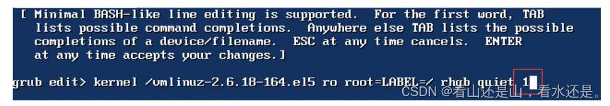 (3)在grub edit行,行尾输入:space 1(空格键和数字1)