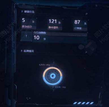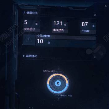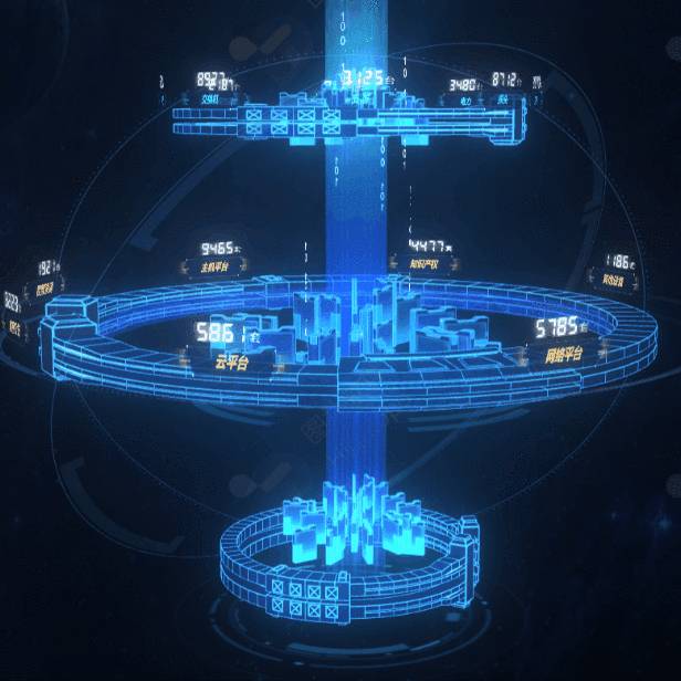 界面中间是一个非常酷炫的三层转盘,每一层代表的是不同组织架构内资产统计情况,同时中间的圆柱上还有二进制代码进行装饰,与围绕在转盘周围的科技环一起,为整个界面营造出前卫的科幻感。