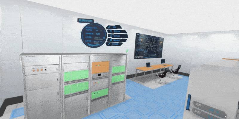 虚拟机房场景通过运用虚拟现实仿真,融合 720° 全景技术、实景三维建模、巡检机器人等前沿科技。实现对机房 IT 资产管理、UPS 硬件状态监控、动环设备、服务器主机的自主监视、故障监测、远程告警监控。从而构建大范围、无死角、多维度的运维管理环境,打造数据中心无人值守的管理模式。