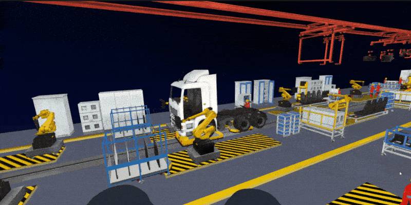 在工业场景中虚拟现实 VR 技术结合 3D 可视化,以数字孪生方式模拟现实中的环境,形成一个可控的虚拟环境空间。虚拟场景内更加人性化的解决传统工业设计、研发、装配、维修、培训等大多数弊端。