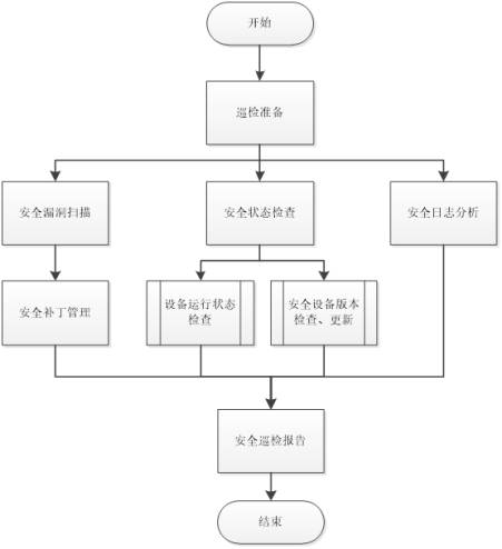 安全巡检服务主要分为三个阶段,分别为巡检准备、巡检实施、巡检报告。