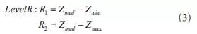 式(3)中,Zmin描述的是灰度最小值,Zmax描述的是灰度最大值,Zmed描述的是中值。LevelW定义如下: