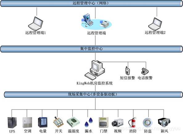 集中监控系统通过一个终端集中展示主机房系统、网络、机房环境及机房配套设备的运行参数、工作状态和报警信息,实时监控各应用和设备。值班人员可以只通过一个大屏幕集中监控主机、网络、机房环境及动力等设备,随时掌握变化情况,一旦发生故障,通过声音、图像显示、短信及时通知相关人员处理,为维护人员分析问题、定位问题和解决问题提供直接的帮助,使监控工作更加直观、方便。