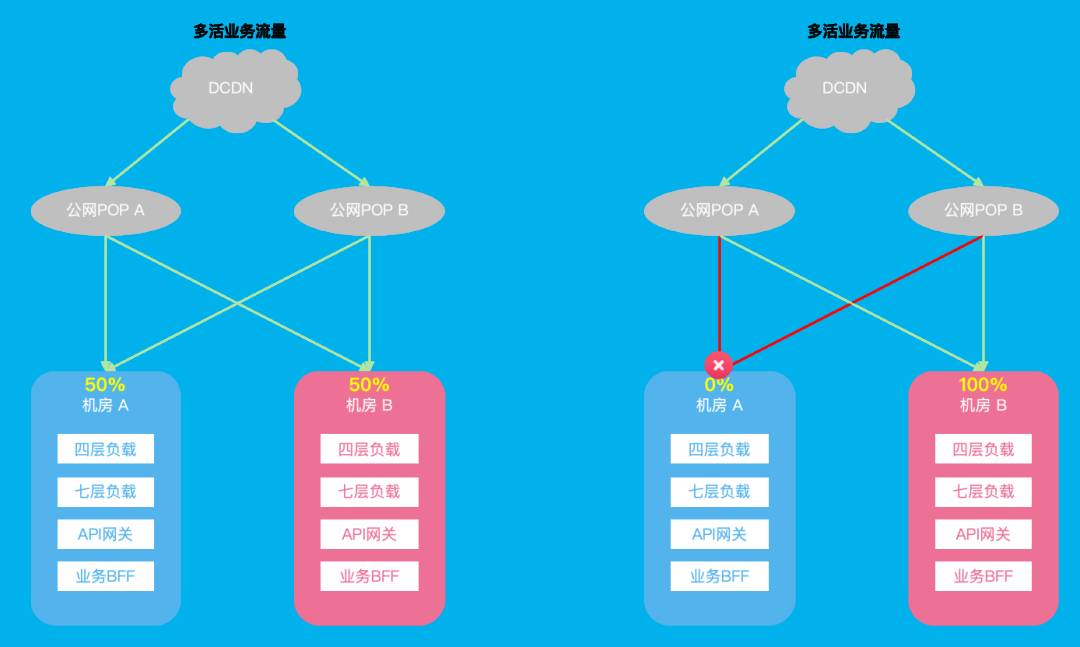 图5:多活业务南北向流量架构:日常态 / 容灾态
