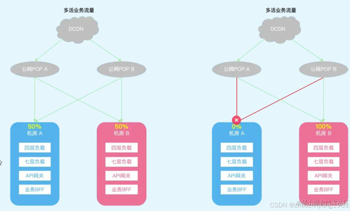 图5:多活业务南北向流量架构:日常态 / 容灾态
