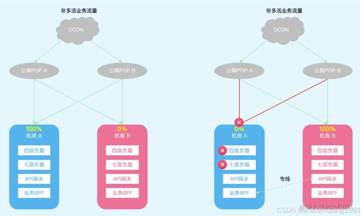 图6:非多活业务南北向流量架构:日常态 / 容灾态
