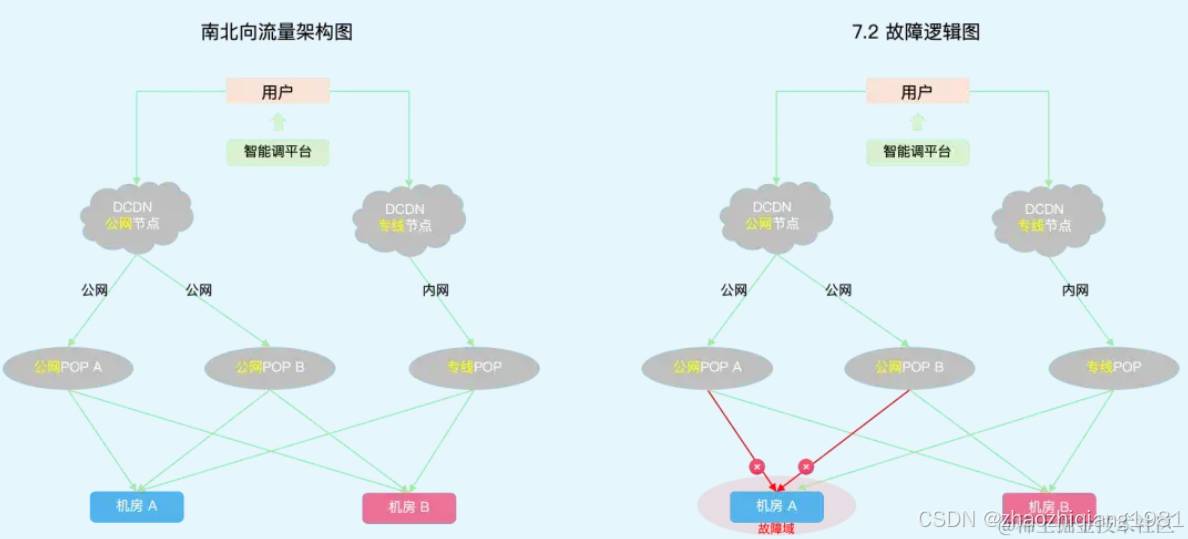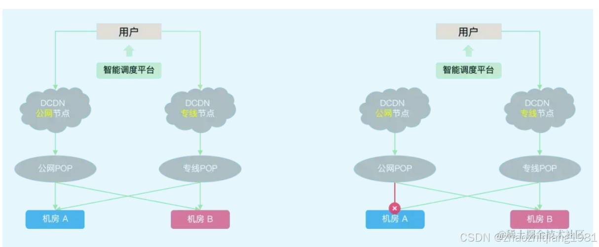 1.提升扩容DCDN节点的算力,提高其承载力,一旦发现机房出现问题,直接从DCDN层进行切流,直接访问专线节点。