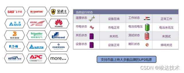1.支持接入1台UPS电源,可实时采集UPS的数据和运行状态,并记录UPS实时告警状态,主要参数包括:输入输出电压、负载百分比、电池容量等参数;主要状态有市电中断、旁路状态、电池电压低状态等状态。