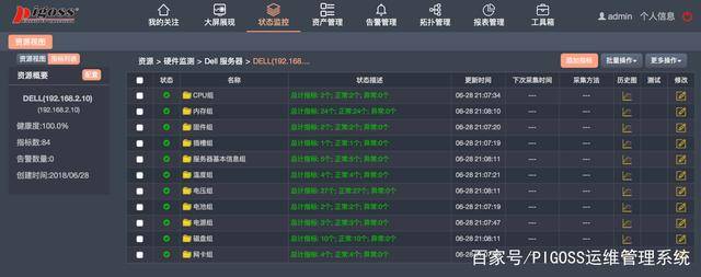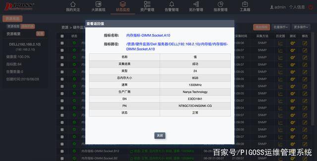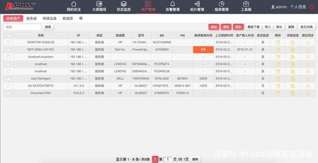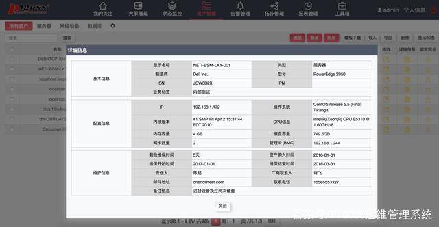 PIGOSS BSM不仅能够监控服务器硬件状态,而且还提供对于服务器资产信息的统计管理功能。