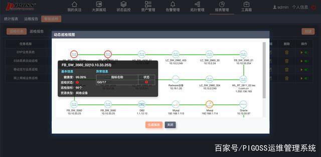 PIGOSS BSM提供硬件设备的自动巡检功能,可以代替运维人员工作中的定期巡检工作,并提供详细的巡检报告。
