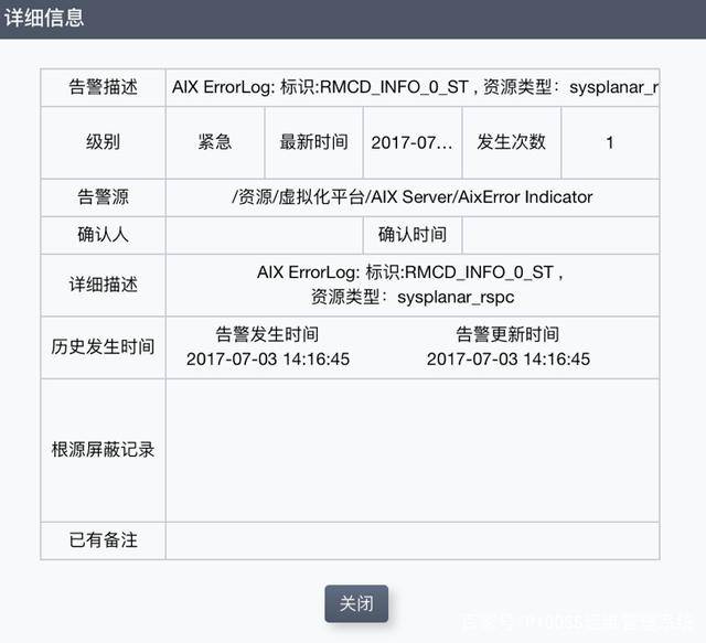 此外,PIGOSS BSM系统融入了一线工程师的运维经验,还能够对AIX Error log报错日志进行监控,真正从运维的角度,实现对服务器硬件信息的全面监控。