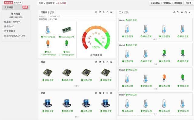 PIGOSS BSM支持对华为刀箱、HP刀箱全面的监控,不仅仅能监控到刀箱的硬件运行状态,也能监控到每个刀片的运行状态,对于一些关键的指标,如刀片温度计状态、风扇、电源状态、磁盘状态、MM/SNM状态、HBA卡、RAID卡、系统日志、刀片日志等。